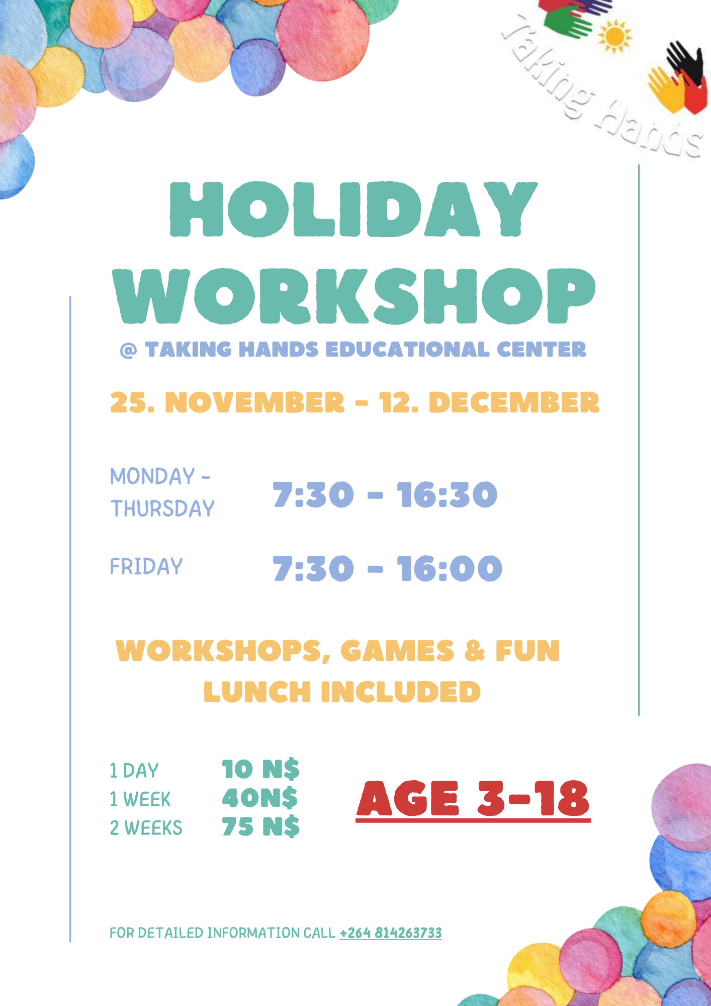 25. November – 12. December – Holiday Workshop
