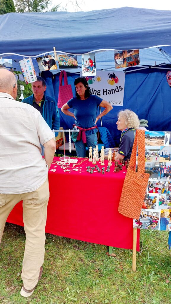Die aktiven Mitglieder von Taking Hands Namibia- Deutschland e. V. mit ihrer ehrenamtlichen Vorstandschaft übernehmen vielfältigsten Aufgaben: Präsentation des Vereins auf Märkten und sozialen Medien, Akquise von Geldern, Fundraising, Erstellen von Plakaten und Flyern, am wichtigsten ist aber die gute Zusammenarbeit mit den Leuten vor Ort.